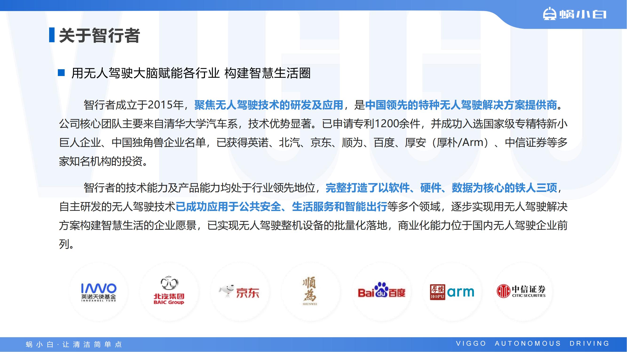 相机、超声波雷达等多种传感器,具备环境感知、自动路径规划、障碍物识别等无人